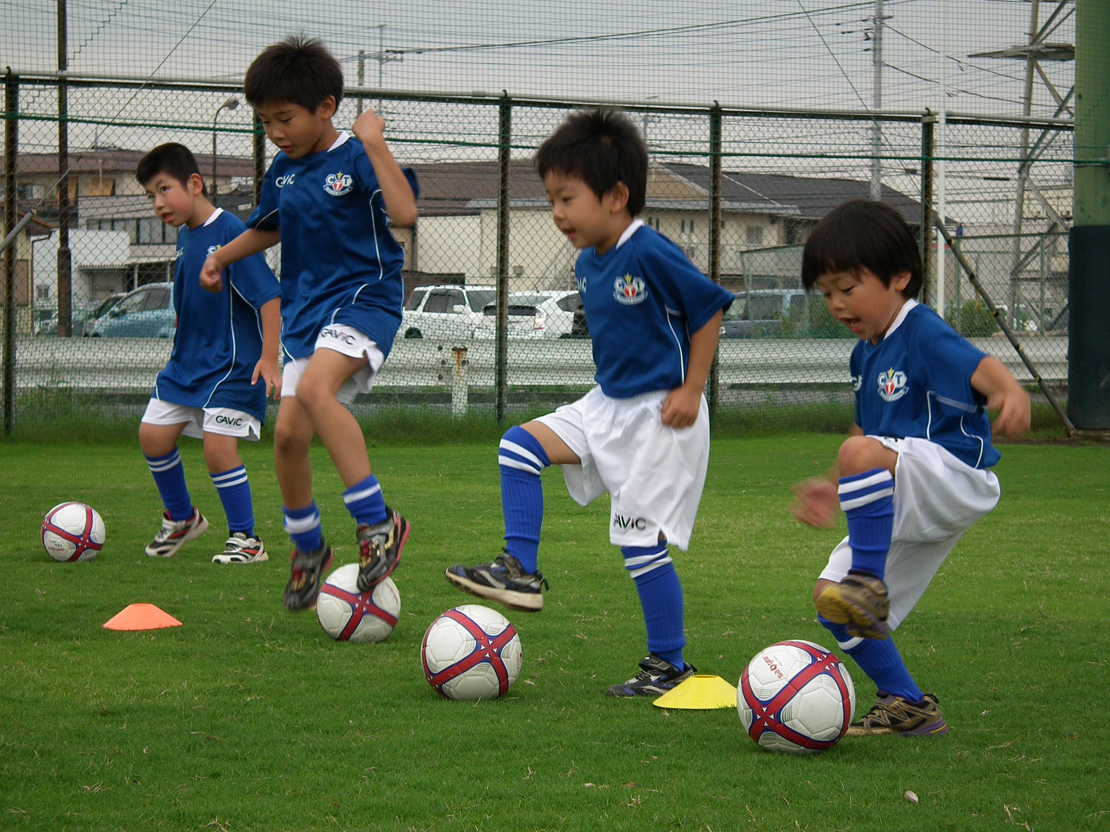 幼児~小学校6年生を対象に、サッカーを通して楽しみながら脳に良い刺激を与える取り組みや、挨拶や集団行動等、日常生活に必要なルールやマナーの習得、そして、身体を動かす楽しさを身に付けて行く事が目的です。