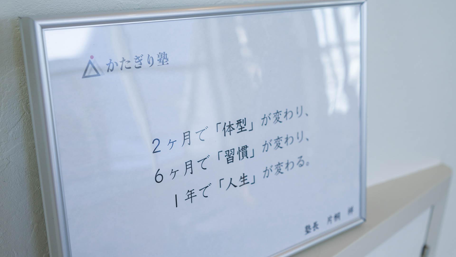 ダイエットとボディメイク、健康づくりの習慣化に特化した、完全マンツーマン形式のトレーニングジム『かたぎり塾』。その一員として、お客様の理想のカラダづくりを支援するのがトレーナーの役目です。