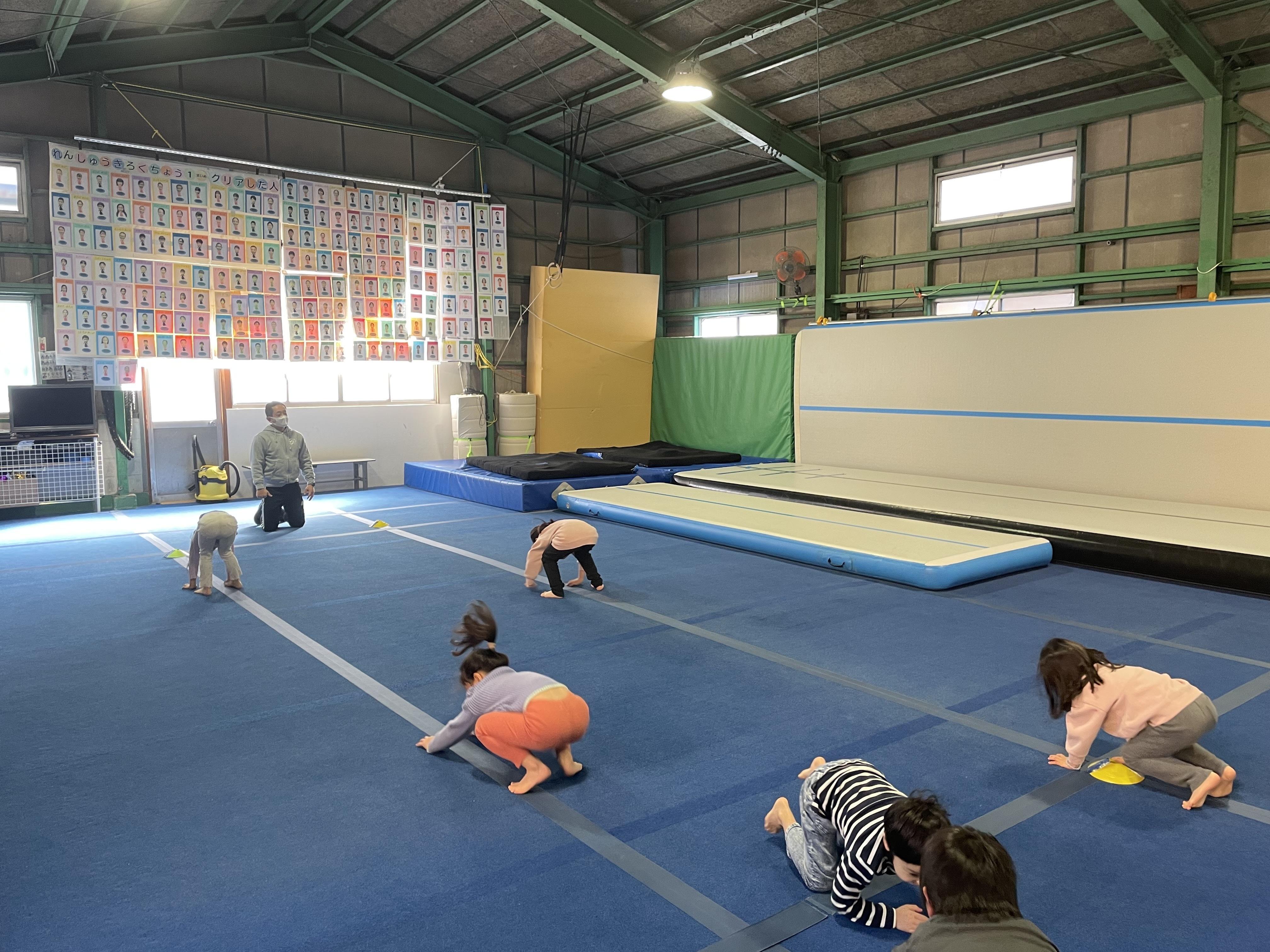 他に準備運動やマットを使っての倒立・前転・後転・側転等の指導も行います。
