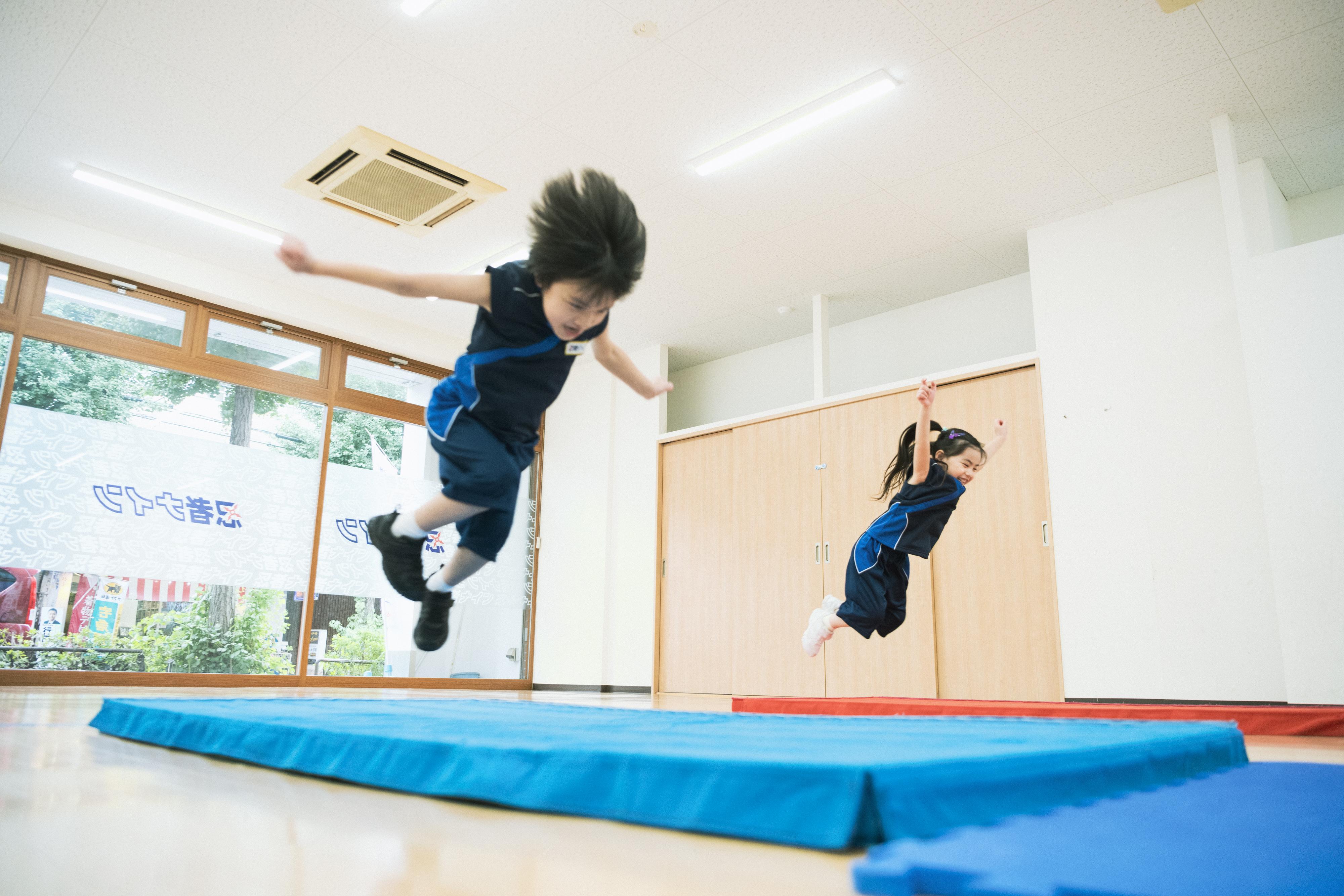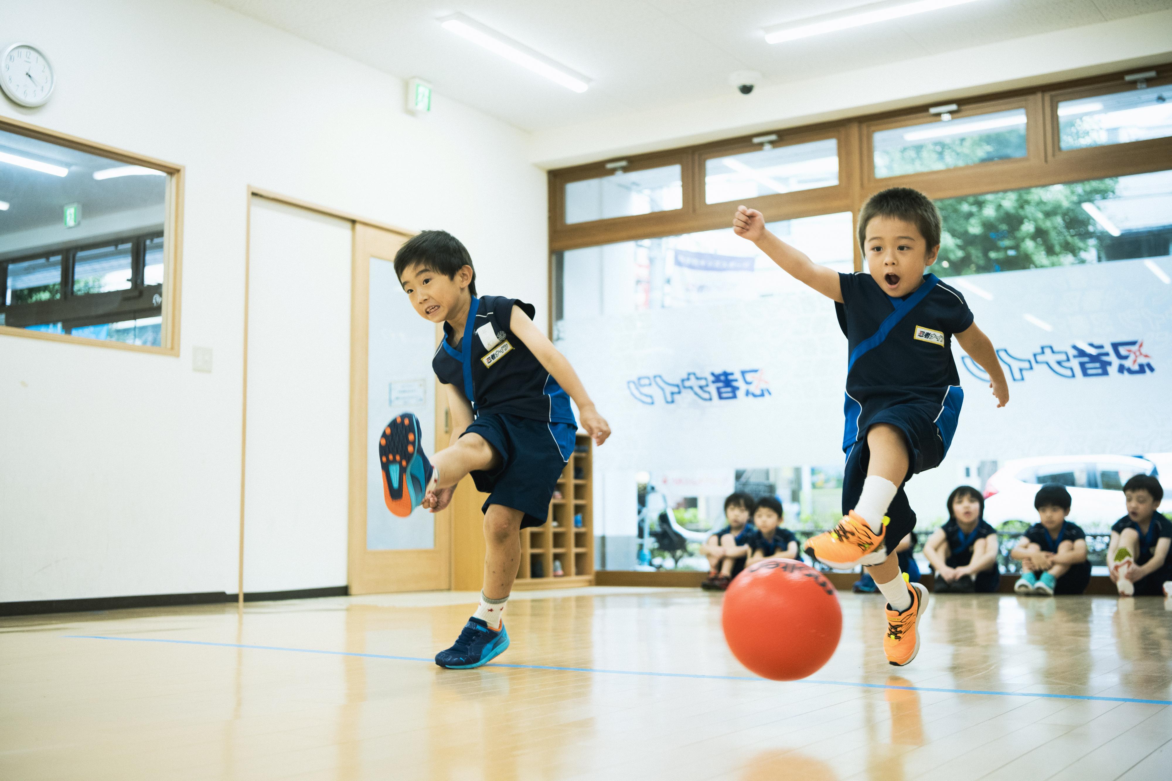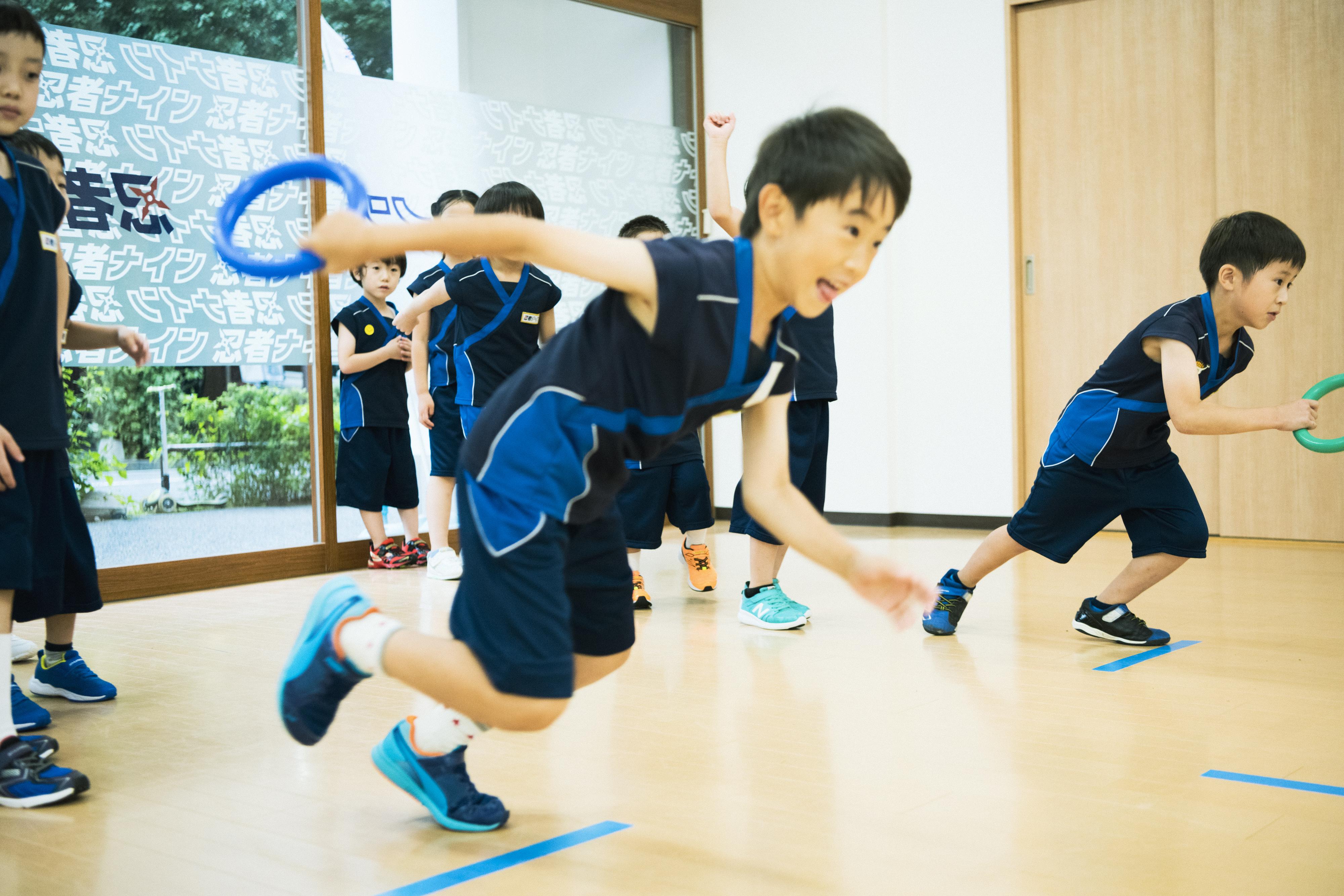 忍者ナインとは… ・科学の力で、運動神経を育てる。 ・チームプレイの中で、社会性を育てる。 ・脳を刺激し、自分で考える力を育てる。